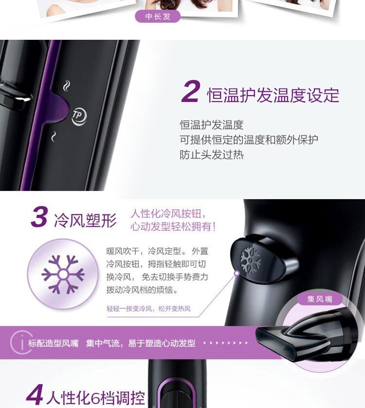 フレックトラックファミリー用大出力ドレヤ理髪店サロン専门版速乾发恒温护发冷热风砂龙级HP 8230/00