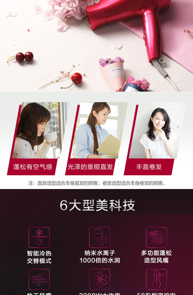 パナソニックのドラえもん家庭用ナノケア大パワと冷熱風を交互にした恒温コーデュナリングして折りたたみ式携帯帯ドレヤEH-WNA 8 B-P 2200 W赤