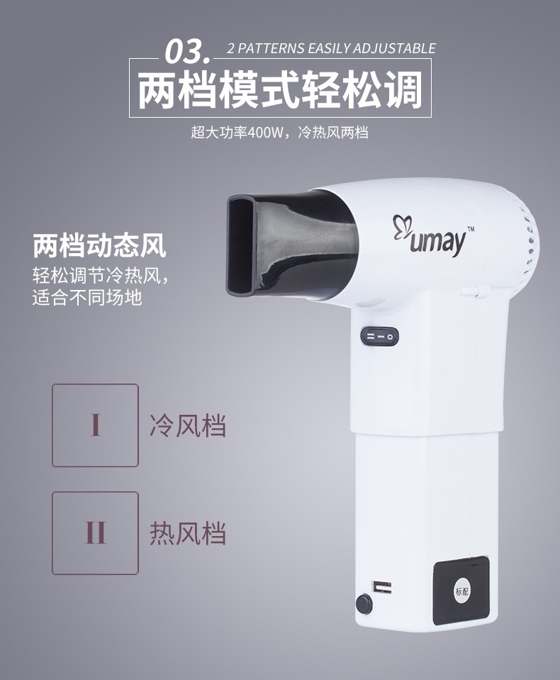 UMAY无线充ドラヤリキウム电池ドライヤUSB携帯型屋外不着电学生寮吹干毛美术连考妊妇供子供给用の标准配备
