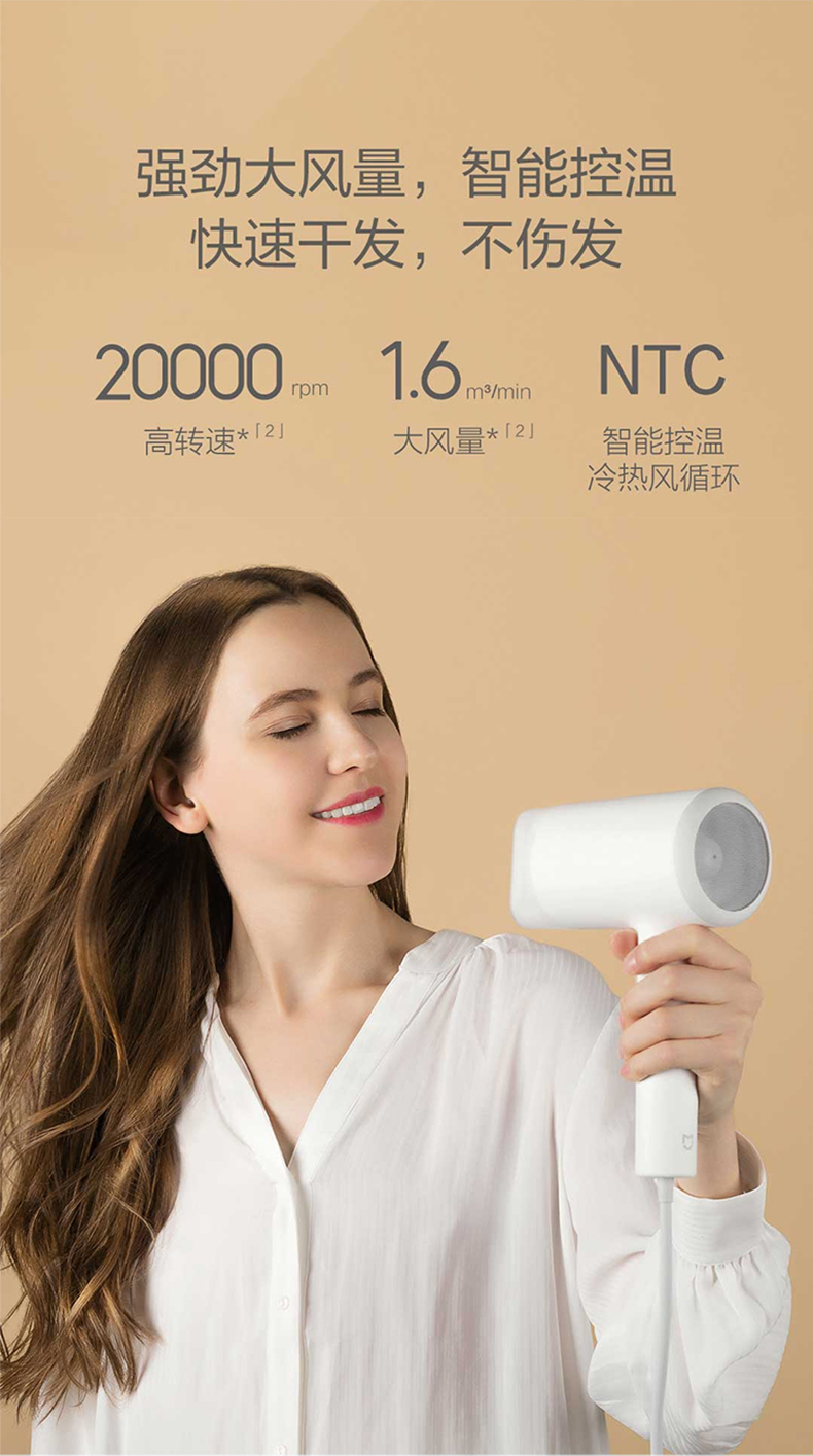 MI水イオドライヤ米家ドライヤ冷熱大風力家庭用携帯型マイナスピード乾ドライヤー小米水イオライヤー