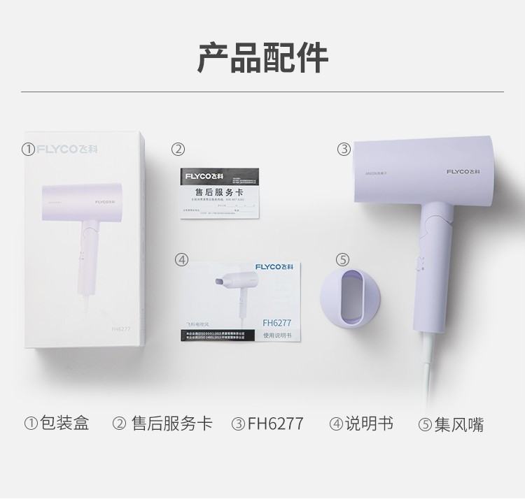 飛科(FLYCO)ドライヤマシンFH 6277マイナ·コリンディナ·家庭用折り畳大出力1800 Wのドライヤの標準装備(顔王淡紫)
