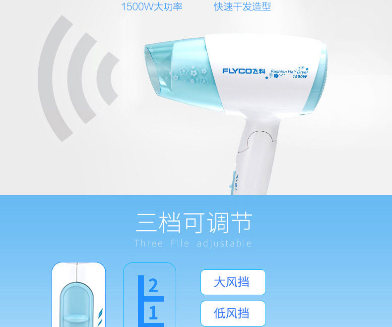 FLYCOドライヤ家庭用ホテリアの寮の廊下で、大きなパワを発挥します。折りたたみ畳式冷热风ドラヤのマイナーFH 6222浅い青いFH 6223+爪は7つのセリングを切ります。