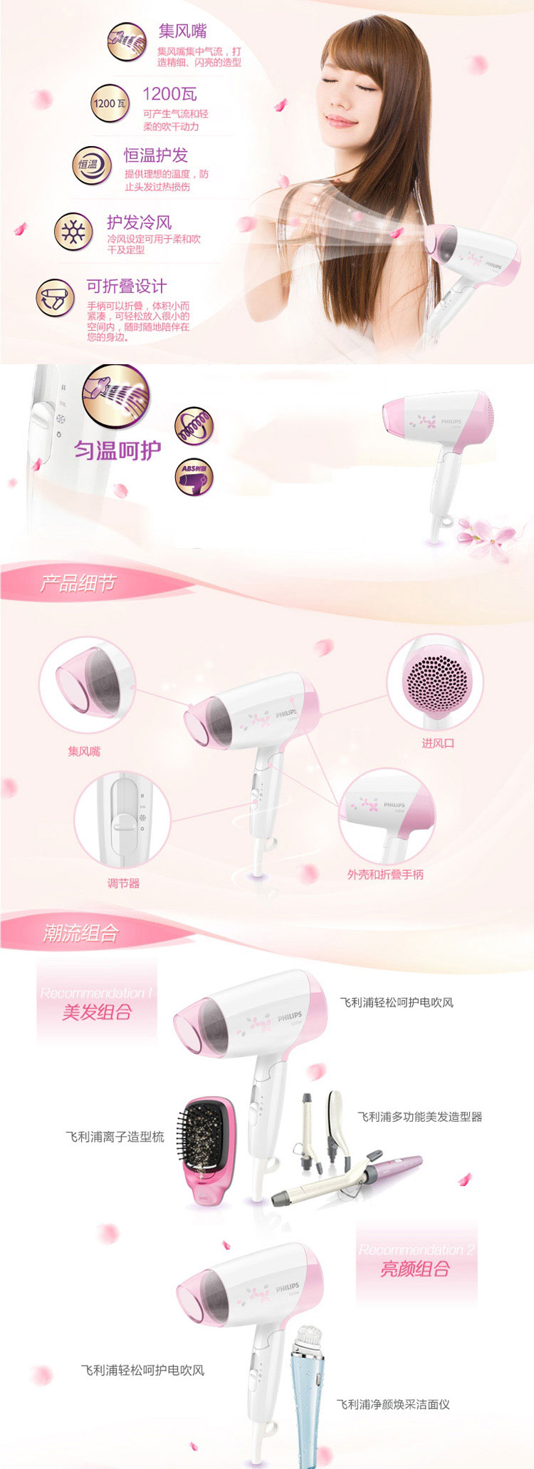 フレップス(PHILIPS)ドライヤの家庭用大出力小型・体積恒温ドライヤHP 8120家庭用折り畳式ドライヤHP 8120 Pinku